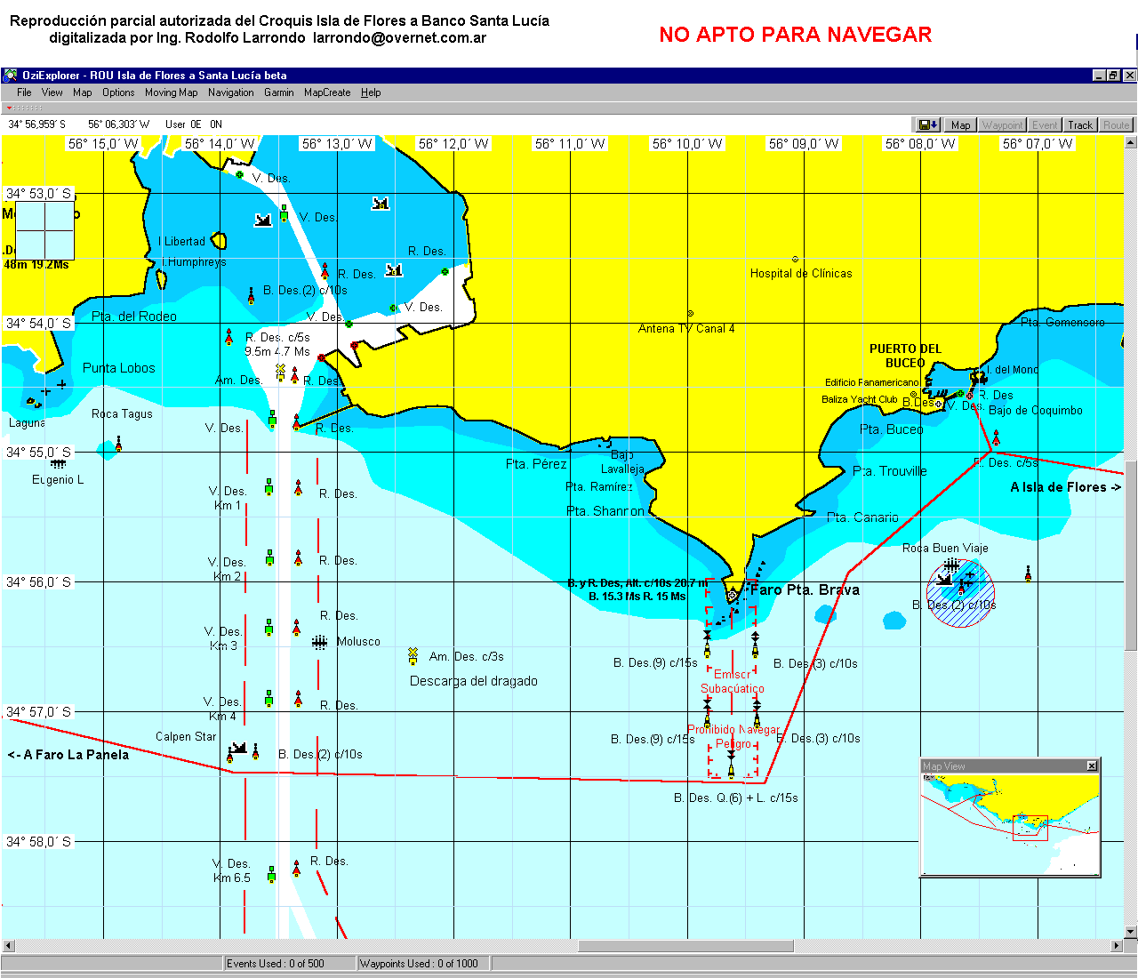 arriba. Su posición es Lat. 34º 54,800’ S Long. 56º 13,350’