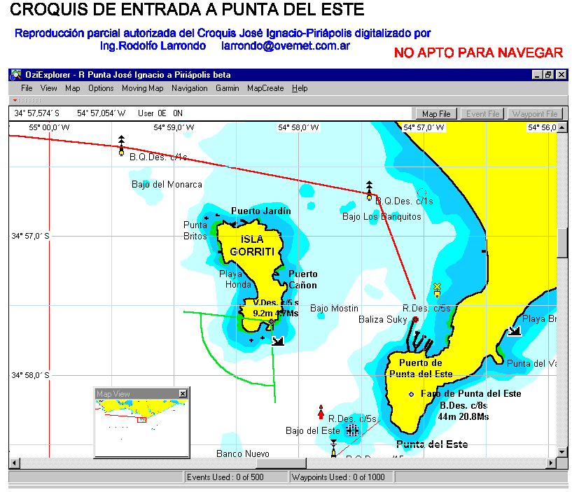 Se recuerda que todas las coordenadas geográficas insertas en el presente derrotero han sido obtenidas con el Datun WGS 84. Las mayoría de las cartas argentinas trabajan con ese Datum. Las cartas uruguayas trabajan con el Datum Yacaré.