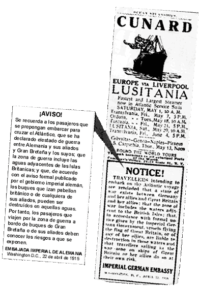 de la Cunard, el “Lusitania” fue torpedeado en aguas de Irlanda,