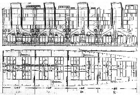 compuesta por cuatro turbinas, que eran alimentadas por 25 calderas