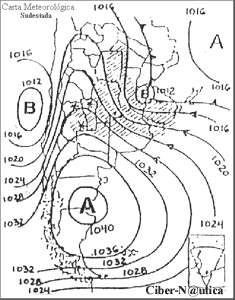 Situación sinóptica correspondiente al cornienzo del Pampero en el Río de la Plata y en la ciudad de Buenos Aires.