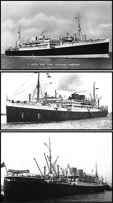 (tierra de), siendo el primero, el Lo cierto es que a fines de la década del 20 el negocio del transporte de pasajeros e inmigrantes estaba en su apogeo como producto de la crisis económica que afectaba a los países europeos pero, también, los sectores sociales más altos comenzaban a difrutar de un gran bienestar. En esos años se incrementó la brecha entre la clase trabajadora y la burguesía industrial y financiera, que haría eclosión en la crisis del '30. En aquel contexto, las empresas de navegación vivieron una época de expansión. La Nelson Line decidió la construcción, en los astilleros Harland & Wolff de Belfast, Irlanda, de una nueva flota de unidades con la tecnología más avanzada, bautizados Highland Monarch, Highland Chieftain (después Calpean Star), Highland Brigade (II), Highland Princess, Highland Hope (II) y el Highland Patriot, todos puestos en servicio entre 1928 y 1932 . Con un desplazamiento de poco más de 14.000 toneladas netas y de una eslora de 163 metros y 20 de manga, eran barcos de pasajeros y de carga, propulsados por modernos motores Burmeister & Wain a fuel-oil de 8 cilindros en línea acoplados a sus respectivas hélices, que le permitían alcanzar los 15 nudos en crucero; tenían dos chimeneas de bajo perfil y dos palos, trinquete y mayor, para vigía y la antena de la estación de telegrafía Marconi sin hilos. Eran los primeros de la compañía en ser propulsados por motores de combustión interna y elevado rendimiento térmico, ya que todos los anteriores tenían máquina de vapor de doble y triple expansión (excepto el Highland Warrior II, el único de la flota con turbina Parson). Los nuevos buques disponían, ademas, de una capacidad de bodega con aislamiento y refrigerada de más de un millón de pies cúbicos, para el transporte de carne congelada y de otros productos que requerían bajas temperaturas para su conservación. Sus comodidades eran para 150 pasajeros en la primera clase, 70 en la segunda y hasta 500 en la tercera. La primera tenía salones decorados con un exquisito "Old English style", pasamanos y mamparos cubiertos de madera y otros detalles de lujo y confort, mientras que los inmigrantes se apilaban en el sollado, en espacios mal ventilados y con escasa iluminación, baños compartidos y condiciones de higiene que dejaban mucho que desear. En el año 1932, varios buques de la Nelson Line fueron adquiridos por la recien fundada naviera Royal Mail Lines Ltd, producto de una reorganización de la antigua Royal Mail Steam Packet Company creada en 1913. Entre ellos, el Highland Chieftain pasó a manos de sus nuevos dueños pero continuó navegando con el mismo nombre para el transporte de pasajeros, carga y correspondencia entre puertos europeos y de America del Sur. Al estallar la II Guerra Mundial, el gobierno británico lo confiscó para convertirlo en transporte de tropas, hasta que el 11 de octubre de 1940, durante un raid aéreo sobre Liverpool realizado por bombarderos Dornier de la Luftwaffe, resultó seriamente dañado quedando fuera de servicio hasta el año 1948. En ese año fue reparado y volvió a navegar, uniendo nuevamente el Rio de la Plata con Inglaterra. Finalmente, en enero de 1959, lo adquirió la Calpe Shipping Co, le cambió el nombre por el de Calpean Star y lo reconvirtió en buque frigorítico, como ya lo hemos comentado. La maldición del Albatros