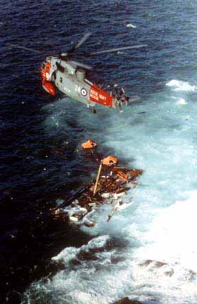 ![]() Helicópteros ayudando en el rescate de los náufragos |