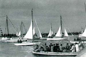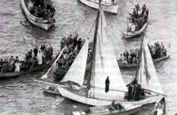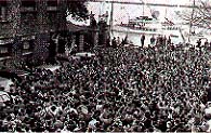 multitud que lo esperaba a Dumas en las afueras de local del Y.C.A. |