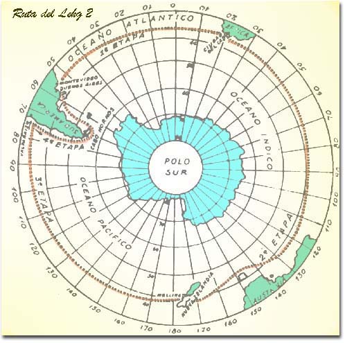La ruta que siguió el Lehg II por los tres océanos, recorriendo un total de 22.000 millas en 272 días